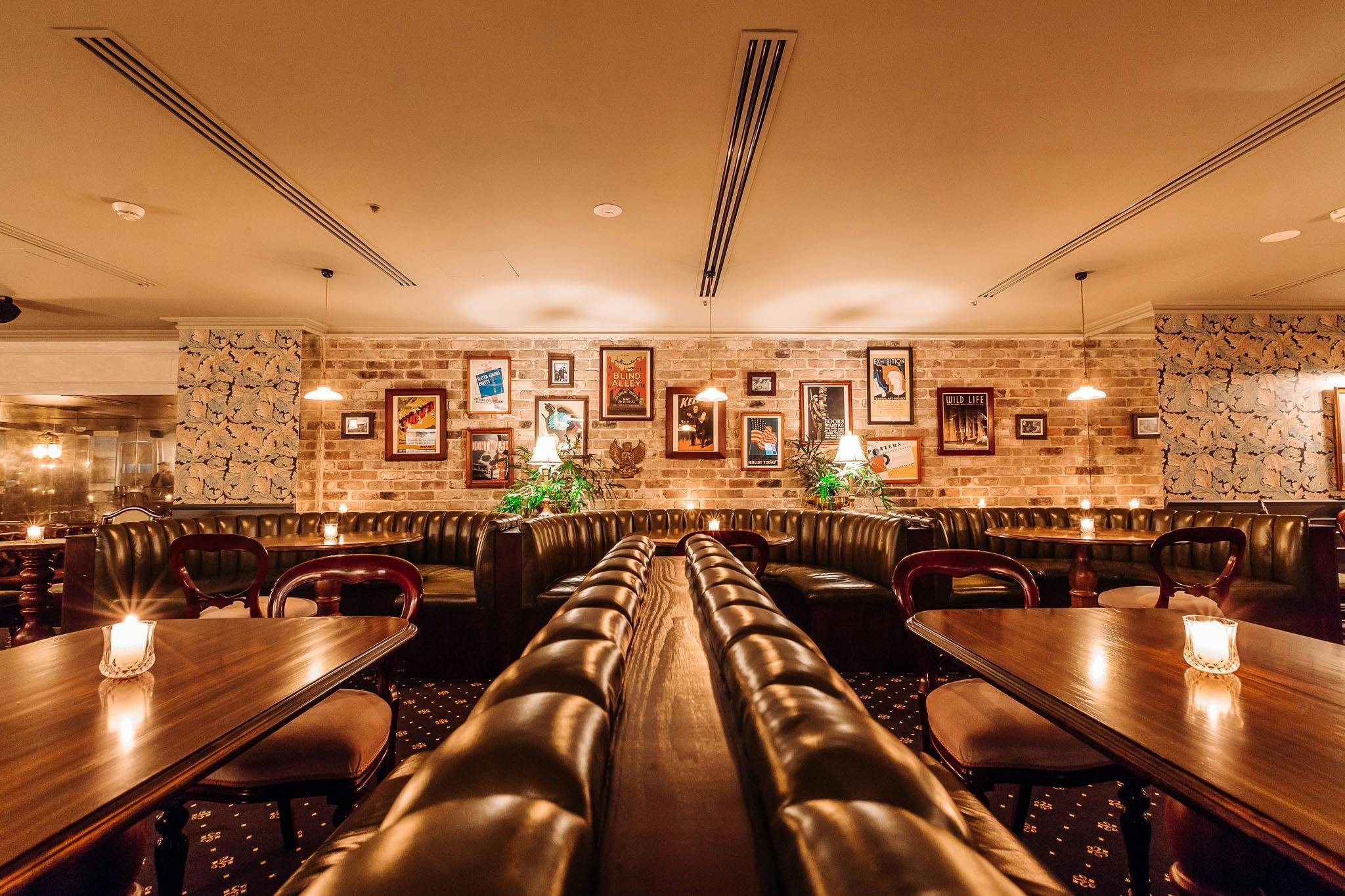 Dark wood a long sit at bar standing room and lots of tables table service charges. Looks great and waitstaff dressed to keep the 40s idea going. The Sofitel Sydney Wentworth 1 min walk from Kittyhawk.
